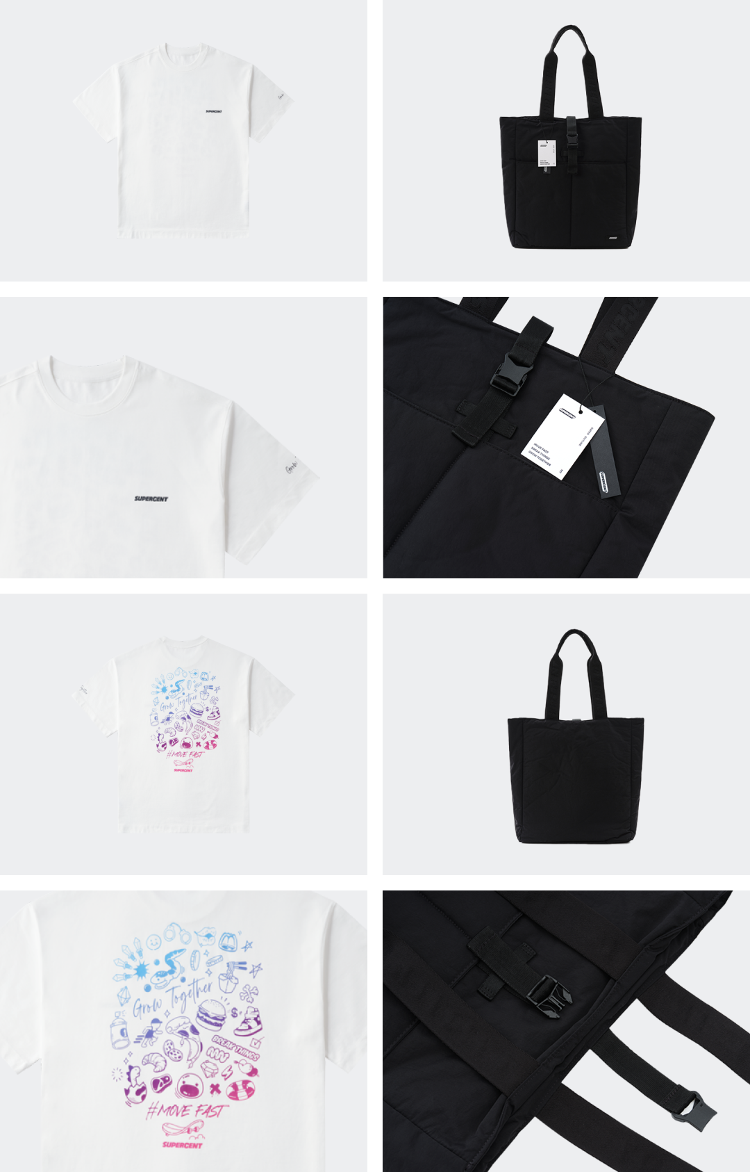 티셔츠에는 슈퍼센트가 런칭한 게임들을 표현한 일러스트레이션이 프린트 되었고, 토트백은