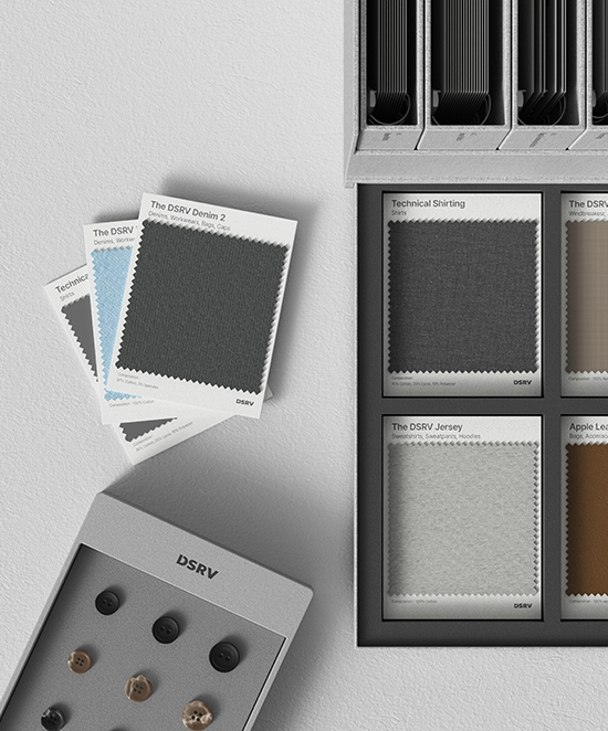 컨설팅은 디저브 쇼룸에서 대면으로 이루어집니다. 3개의 디저브 라인 및 아카이브 제품들을 직접 살펴보시고 착용해보신 후 어패럴, 액세서리, 그래픽 전문가들과 함께 상담하신 내용을 바탕으로 제품 기획을 시작합니다.